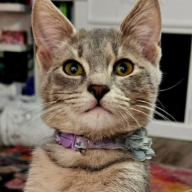 Bubbles is a sweet and playful grey tabby with a heart full of curiosity and charm. Whether she's chasing shadows or curling up for cuddles, she brings joy and gentle mischief to every moment.